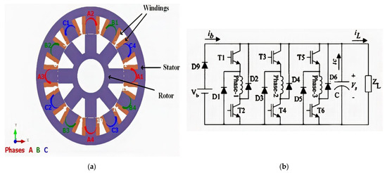 Overall cross-sectional view of the 12/8 SRG: (a) Structure of machine and (b) A 3-ph SRG asymmetric half-bridge converter [4].