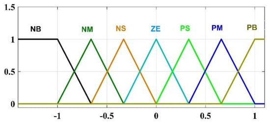 The membership functions and the partition of fuzzy subsets are depicted in Figure 7. This arrangement’s membership functions have a triangle form.