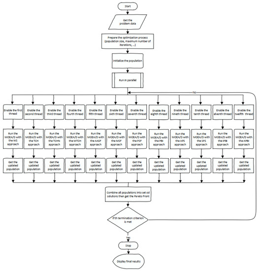 3.7. Problem Solution Using Decomposition-Based Multi-Objective Evolutionary Algorithm (MOEA/D)