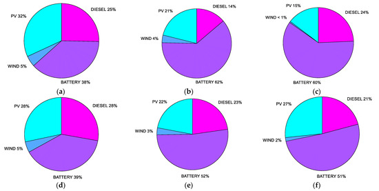 - Ramli, M.A.M.; Bouchekara, H.R.E.H.; Alghamdi, A.S. Optimal Sizing of PV/Wind/Diesel Hybrid Microgrid System Using Multi-Objective Self-Adaptive Differential Evolution Algorithm. Renew. Energy 2018, 121, 400–411. [Google Scholar] [CrossRef]