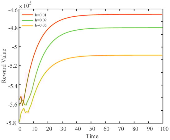 Define as the reward value of the whole iterative process of the system, and multiply the reward value of the future moment by the discount to represent the importance of the future reward value [,]. Its mathematical expression is as follows: