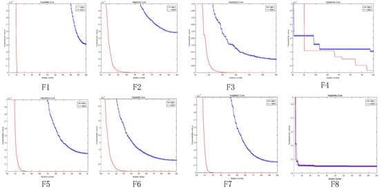 In solving the minimal value problem, the smaller the mean value, the better the algorithm’s average performance. The smaller the standard deviation, the more stable the algorithm. The results in Table 3 show that IGWO outperforms GWO in terms of the mean and standard deviation of optimal solutions for functions F1–F8. Figure 2 further illustrates that the minimum values obtained from IGWO are smaller than those obtained from GWO solutions. Therefore, IGWO is superior in performance and stability to GWO.