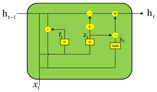 Figure 3 shows the principle of the GRU cell structure. The internal structure bears similarities to LSTM. However, GRU is characterized by the presence of only two gates, which reduces “gate control,” and also has relatively fewer parameters. Therefore, the GRU model reduces the computation time compared to LSTM [44], while being equally functional. When building models with multiple neural networks in parallel, the GRU model is preferable.