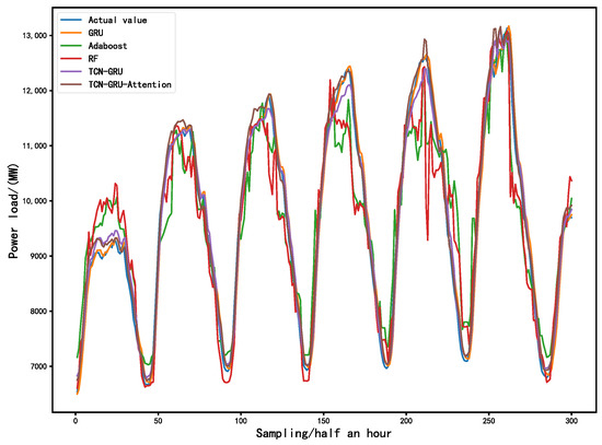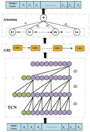 In short-term load forecasting, since the predicted time steps are short, it is necessary to mine historical information and preserve most of the information at each step. The causality between the TCN convolutional layers means that there will be no “missing” historical information or future data that can extract information from the historical load sequence [47]. The extracted information features are input into the GRU to enable it to better study the correlation and regularity of the information. The excellent structural design of GRU enables the maximum preservation of features for sequential learning and propagation at each time step. When the important feature information is transmitted in GRU, in order to avoid the decrease in the importance of information in each level caused by a long time period and long sequence, based on this foundation, the present study introduces an attention mechanism after the output layer of GRU to perform weighted processing of the important features outputted by GRU, thereby preserving important information and improving prediction accuracy.