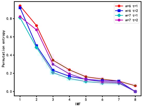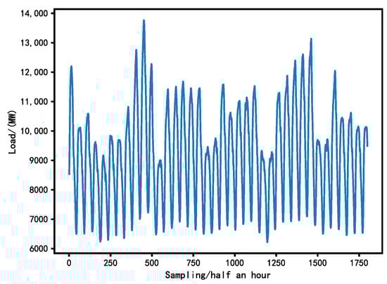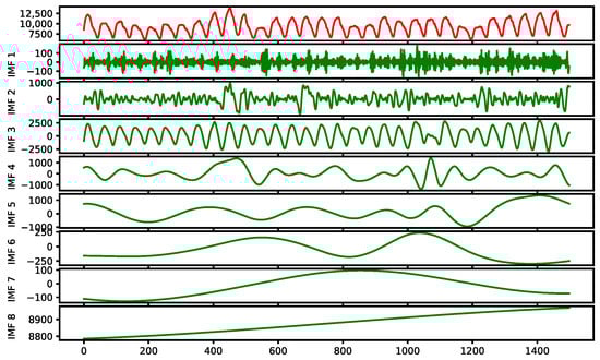 The power load sequence exhibits multi-frequency characteristics, where high-frequency components represent small-scale variations of the load curve over short periods, while low-frequency components represent smooth changes. CEEMDAN is employed for the investigation of internal variation patterns within the load sequence. White noise is introduced into CEEMDAN with the opposite sign to the original load sequence to avoid endpoint effects and mode mixing, making it more advantageous for time series decomposition [45].