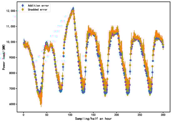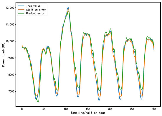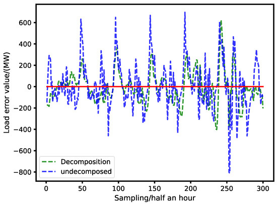 Figure 17. The error value between the load forecast value and the real value using and not using CEEMDAN decomposition.