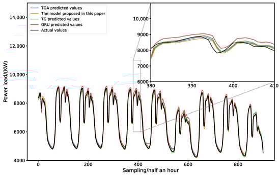 Table 8. The evaluation metrics for the GRU, TCN-GRU, TGA models without error value and three-stage load prediction model based on CEEMDAN-TGA.