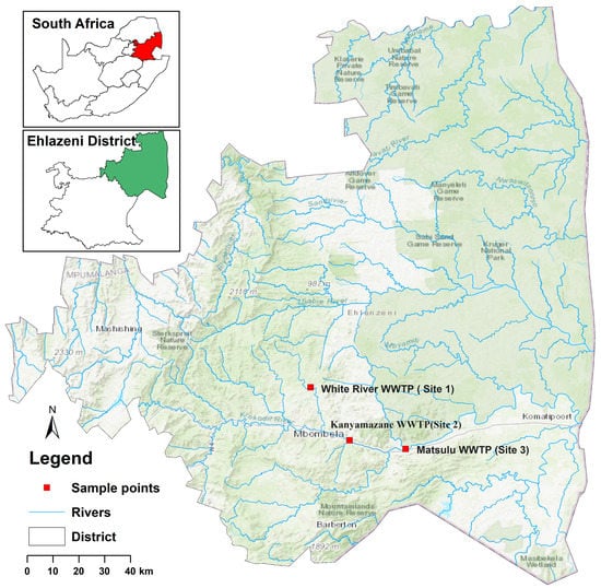 Figure 1 shows the three sampling locations, namely White River, Matsulu, and Kanyamazane. The samples were taken at the three sampling sites located within the study area between 2016 and 2021 during El Niño (drier seasons and drought conditions), La Niña (rainfall and abundant seasons), and the normal period (normal (neutral) period).