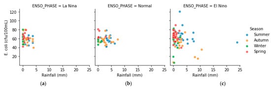 E. coli Seasonal Concentrations with the Influence of Rainfall during the Three ENSO Phases