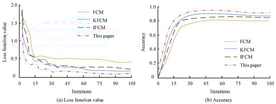 The convergence and accuracy of different methods were compared in the experiment, as shown in Figure 6. From the figure, the improved method has a fast convergence speed, and its final loss function value is the lowest among all methods. Moreover, its accuracy is the highest among all compared methods. The results show that this method has better performance.