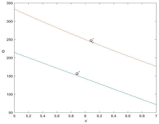 Figure 1. Optimal ordering quantities Q* and Q r * with different long-term prices c.
