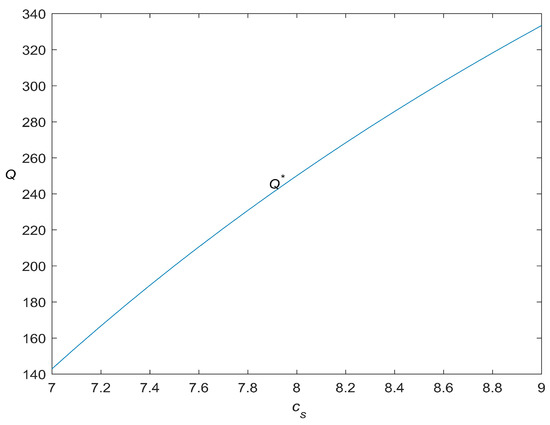 For c = 6, the optimal ordering quantities Q* with different spot prices cs ∈ [7, 9] are illustrated in Figure 2. From Figure 2, we find that the optimal ordering quantity Q* increases with the spot price cs.