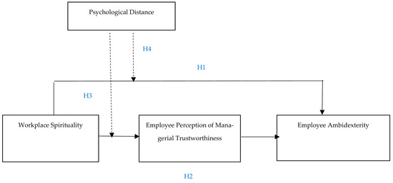 Furthermore, the question arises as to how WS can reinforce employee ambidexterity. For this reason, we argue that employee perception of managerial trustworthiness (EPMT) will mediate the association between WS and EA. The perception of managerial trustworthiness refers to how employees perceive and evaluate the trustworthiness of their managers or supervisors within the organizational context. It involves assessing the manager’s credibility, reliability, honesty, and integrity. However, insights into these aspects are inadequately studied. The present study is an attempt to address this gap as well. Hence, this study aims to address the following question: