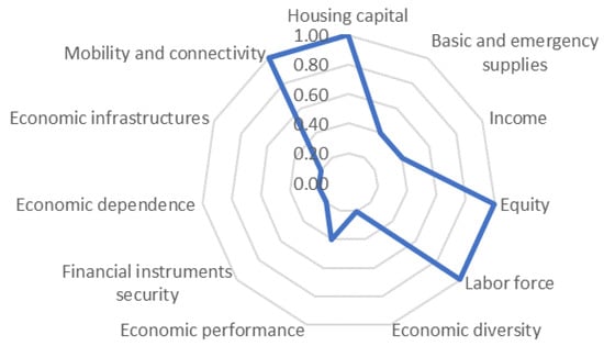 The economic dimension Figure 4 results showed a positive trend of housing capital, mobility connectivity, financial instruments security, labor force, and equity. However, it is essential to note comments about specific data.