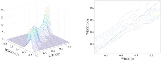 Dynamic kernel density and contour map of WRCC under second-order spatial lag.