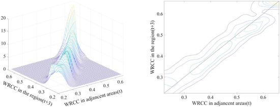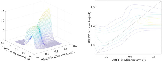 Dynamic kernel density and contour map of WRCC under first-order spatial lag.