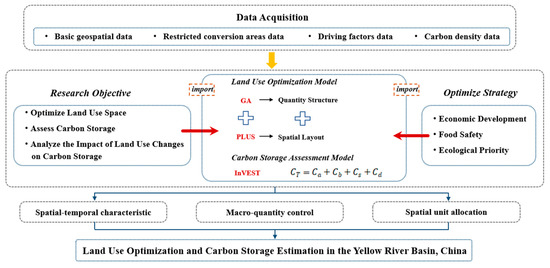 The following steps were used to carry out LULC optimization and carbon storage estimation of the Yellow River basin in this study (Figure 2):