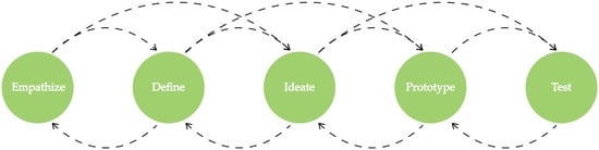 The five steps of the design thinking methodology, adapted from Stanford Design School.
