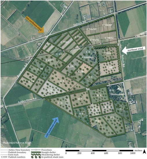 - Lucas, D. Ashley Dene before sheep. In Ashley Dene Lincoln University Farm: The First 100 Years; Lucas, D., Gow, N., Nicol, A., Eds.; Lincoln University: Lincoln, NZ, USA, 2012. [Google Scholar]