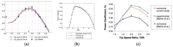 (a–c) Examples of experimental and numerical results of Cp-TSR curves [35,36,37].