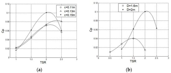 (a) Cp-TSR curves with different chord length (b) Cp-TSR curves with different diameter [82].