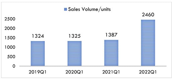 Figure 7. Sales volume (units) from 2019Q1 to 2022Q1.