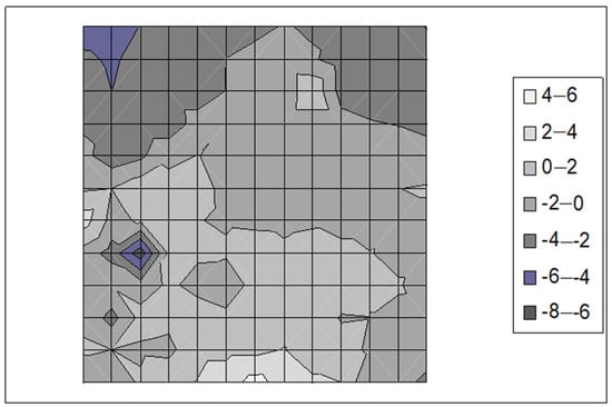 The measurement of transverse curvature (height map of the surface) of panels from Room 1 of the Tarnowiec Manor House; deformation values have been given in mm.