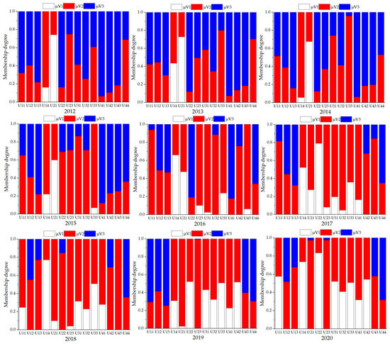 The membership degree of each index during 2012 and 2020.