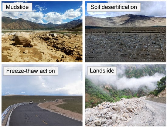 Natural disasters in Tibet are widespread and frequent, so they cannot be disregarded as a significant impact factor. The primary disaster types include seismic hazards, geological hazards (landslides, collapses, mudslides), and meteorological hazards (snowstorms, sand storms, floods, and freeze–thaw cycles) [].