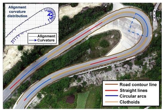 - Antonio Martín-Jiménez, J.; Zazo, S.; Arranz Justel, J.J.; Rodríguez-Gonzálvez, P.; González-Aguilera, D. Road safety evaluation through automatic extraction of road horizontal alignments from Mobile LiDAR System and inductive reasoning based on a decision tree. ISPRS J. Photogramm. 2018, 146, 334–346. [Google Scholar] [CrossRef]