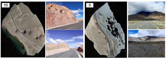 Affected by climate, topography, and geology, natural disasters such as soil desertification, freeze–thaw action, mudslides, and landslides are frequent, dangerous, and widely distributed, posing a significant threat to the safety of road construction projects. Figure 2 depicts the hazard zones close to the road.