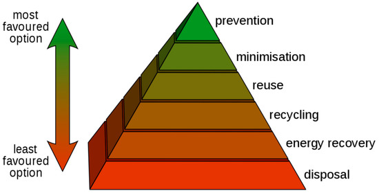 The evaluation regarded waste treatment hierarchy according to the UN Environmental Program [29], as illustrated in Figure 1.