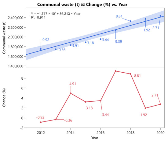 Growth trend of communal waste development in Slovakia in 2011–2020. Source: own processing according to (accessed on 15 March 2023) [33].