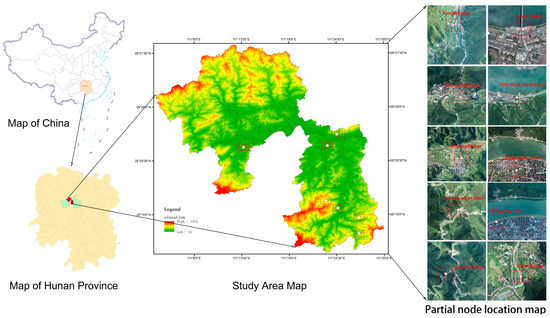 To analyze the mechanism of scenic beauty influence of different perspectives and landscape factors in different scenes and scenes of landscape tourism routes in urban and rural areas, historical walking trails through rural and urban areas were selected for empirical research. The study area is located in Huanghuaxi Village, Zhulinxi Village, Dongshi Village, Xitan Village, Sixian Village, Jiangnan Town, and Dongping Town in Anhua County, Yiyang City, Hunan Province, a total of two towns and five villages, which include the Yaozijian Ancient Road and the modern towns within the radiation of its tourism supporting services. Yaozijian Ancient Road is an important starting point of the Wanli tea road (Hunan section) inscription, which is about 30 km from the Yuanqi Bridge in Huanghuaxi Village, Jiangnan Town, Anhua County, to the Wufu Gong Pier on the bank of Zijang River in Jiangnan Town, with a summit elevation of about 512 m. The main nodes of the ancient road from south to north are Yuanqi Bridge—Dapingxiehuo Store—Yaozijian Stone Road (Ganlu Pavilion, Yizhong, ancient monuments, cliff carvings, Meng Gong Temple)—Juegong Bridge—Dongsi Old Street—Yongxi Bridge Yongxi Bridge)—Sixian Bridge—Zijiang River in Jiangnan Town (Liangzuo Tea House, Dehe Tea House, Liangjia Pier in Jiangnan, Wufugong Pier). As the most important section of Anhua’s ancient tea route, it witnessed the historical process of the prosperity and decline of the tea trade in the ancient Meishan area. At the same time, this section of the ancient tea road involves a variety of landscape types and there are great differences in visual beauty between different scenes, mainly natural landscape, rural landscape, or town landscape. Because the historical relics need to be kept intact and the modernization of the surrounding environment varies, there are also large visual beauty differences between different viewpoints within the same scene. The above two aspects of the difference in characteristics just met the needs of the research questions in this study. In addition, the eight scenes in Anhua County were not collected at the Yaozijian Ancient Road but were selected as modern townscapes within the radiation of tourism support services along the ancient tea horse road, forming a strong contrast in style with other scenes, which is more capable of supporting the issues explored in this paper. The remaining 53 scenes were all located on the Yaozijian Ancient Road (as shown in Figure 1).