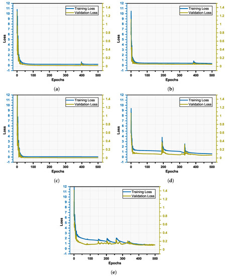 Loss plot of proposed LSTM−based network for studied climate variables. (a) (b) (c) (d) (e) .