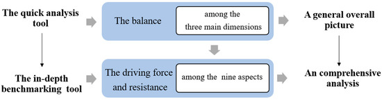 The two-hierarchy tools for the HEIs in Beijing–Tianjin–Hebei were developed and presented. First, the conceptual framework and weightings were proposed to establish a comprehensive structure for the tools. Second, the purposes, indicators, weightings, and scoring of each tool were presented.