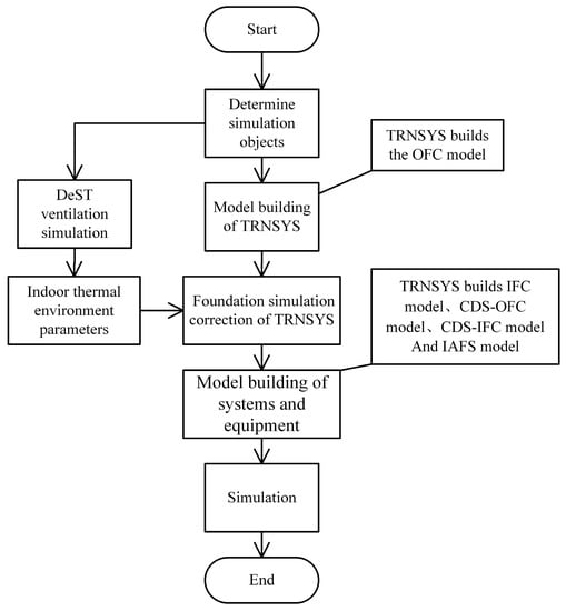 The research program is shown in Figure 3. The use of DeST simulates the natural ventilation of the building, and the results are used as input of the indoor air velocity in TRNSYS to calculate the PMV. The difference simulation results of the indoor thermal conditions of the OFC model show that the two software are within 10%.