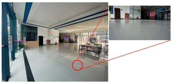 Guilin’s atmospheric temperature and air moisture contents are relatively average compared to the other cities. In this study, a university office building in Guilin serves as an illustration. The indoor thermal environment of the entrance hall is simulated (Figure 5). The hall has a surface area of 249.48 m2 with a depth of 17.6 m, 4.8 m high, and the walls of the front and rear entrances contain a 10 mm thick tempered glass curtain, the door opening area is 5.1 m2, and there are polished floor tiles. The office facility is open from 7 a.m. to 10 p.m., during which time a significant number of people enter and depart through the hall. In Guilin, the average relative humidity for March and April is 78% and 77%, respectively. Under the influence of mild and humid air, the phenomenon of “Moistening Weather” occurs frequently, and the damp and slick polished floor tiles have a significant impact on walking. Based on the climate level of the region, the equipment in the IAFS can be determined and the technical data are shown in Table 3.