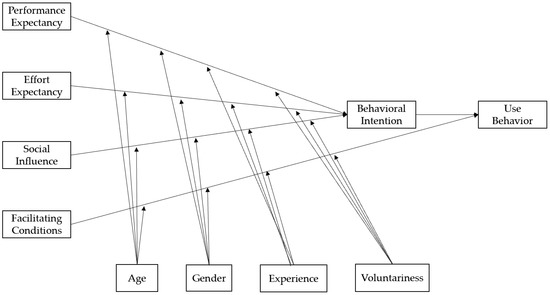 - Venkatesh, V.; Morris, M.G.; Davis, D.F.D. User Acceptance of Information Technology: Toward a Unified View. MIS Q. 2003, 27, 425–478. [Google Scholar] [CrossRef]