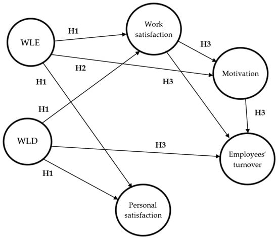 On the basis of the data presented in Table 4 and Table 5, we can confirm the validity of hypothesis 3 (H3). The disequilibrium between professional and private life (WLD) increases employee turnover intention, while the equilibrium between professional and private life (WLE) decreases turnover through improved job satisfaction and motivation.