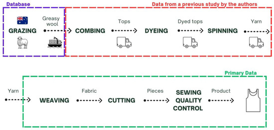 The first part of the production chain (from sheep grazing to yarn production) is not under the control of the company involved in this study. For these processes, Ecoinvent background datasets and previous studies of the authors [35] have been used to allow better alignment with the available literature and to facilitate future comparison with other studies.