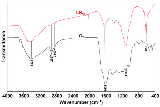 The absorption peaks observed at 2847 cm−1 and 2927 cm−1 are attributed to the asymmetric stretching vibrations of –CH3 and –CH2 in alkanes, respectively, and the peak intensity of LRYL is weaker compared to YL, speculating that there is removal of some small hydrocarbons during the pretreatment step.