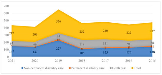 Statistics on construction safety accidents in Malaysia (2015–2021).