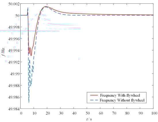 It can be seen from Figure 9 and Table 1 that if the wind turbine does not have the ability to regulate frequency, when the wind power penetration rate continues increasing, the minimum frequency continues decreasing, and the time to reach steady state gradually increases, so the frequency regulation effect of the power system becomes worse. The fundamental reason is that the wind power cannot provide the inertia time constant of the power system of the part of thermal power units that it replaces. As a result, the inertia time constant of the power system is significantly reduced, and the anti-interference ability of the power grid to sudden power changes is greatly weakened.