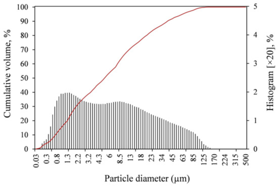 Since dust is collected in e-filters, it is quite fine and 90% of the ECD fraction was less than 48.71 μm in diameter (Figure 2). The fineness of the material is well suited for its application as supplementary cementitious materials (SCMs) without the need for additional crushing or other processing.