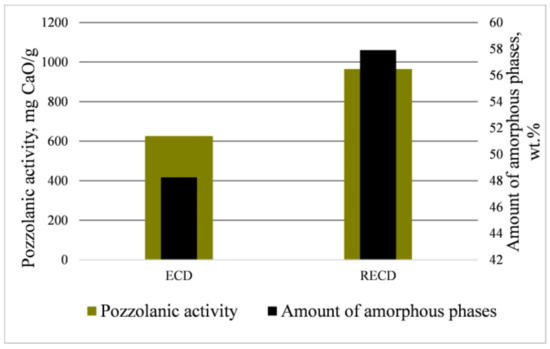 Amount of amorphous phase and pozzolanic activity of ECD and RECD.