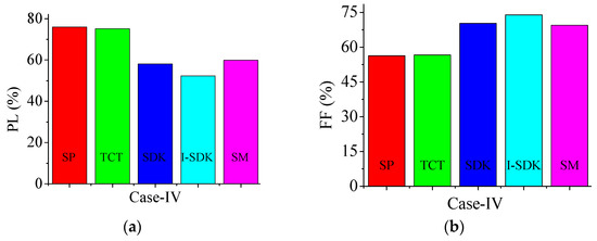 According to a recent experimental investigation, the I-SDK configuration had the lowest PL of 29.02% for performance evaluation during shading case-IV. I-SDK had lower PL values than the SP, TCT, SDK and SM setups according to the bar chart analysis in Figure 23.