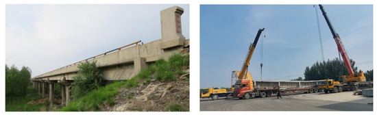 A 1500 m span highway RC bridge in the Liaoning Province of China was built in 1991 and was reinforced in 2005. The main girder of the superstructure is the form of a T-shaped section, precast by ordinary reinforced concrete of a 20 m span and with non-prestressed, simply supported beams. In this study, one T-beam was taken down from the original bridge as a specimen, intended to be used for flexural performance experiments in the laboratory (Figure 1).