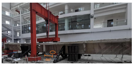 The distribution beam was 3 m long, and the total length of the predesigned bending zone was 2500 mm. The center of the load distribution beam was strictly aligned with the center of the loading point, and two standard rubber pads at each end of the distribution beam were used as support for the distribution beam.