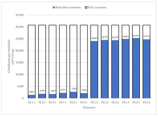3.3. Potential of Greenhouse Gas Emission Reduction in Different Scenarios